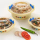 This set of casseroles comes with an elegantly designed exterior which features a dual-tone outer finish combined with attractive graphics. It makes an ideal gift for any occasion.