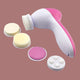 The 5-in-1 Smoothing Body and Facial Massager in pink offers a comprehensive skincare solution with five interchangeable heads designed for cleansing, exfoliating, and massaging. This elegant device includes a stone polisher to remove dead skin and smooth texture, a soft brush for deep cleansing, coarse and fine sponges for makeup removal and gentle cleaning, and a massage ball to promote relaxation and rejuvenation. Compact and versatile, it enhances blood circulation, aids in better absorption of creams, and effectively removes tough skin from feet and elbows, leaving your skin nourished, refreshed, and radiant.