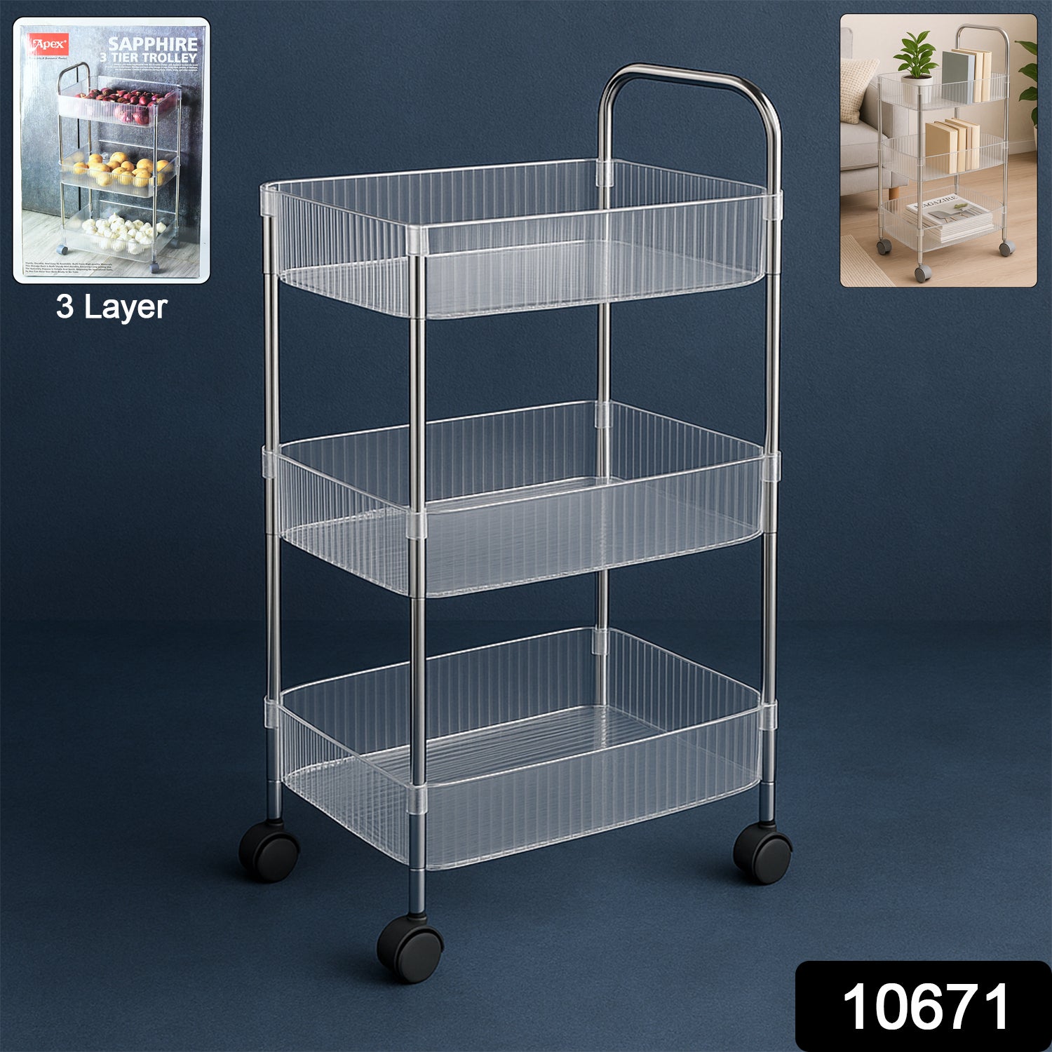 Apex Sapphire 3-layer Multipurpose Storage Trolley With Wheels