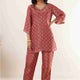 Refine your wardrobe with this elegant peach floral Co-Ord Set, showcasing a V-neck trimmed with gold and stylish bell sleeves that exude grace. Made from soft, breathable tissue zari fabric, it ensures comfort while featuring intricate handcrafted sequin and motif detailing on the neckline and sleeves. The timeless floral design lends a sophisticated ethnic appeal, ideal for festive occasions, travel, or everyday wear. Dry clean only for optimal care. Color: Red Top Length: 32" Bottom Length: 36"