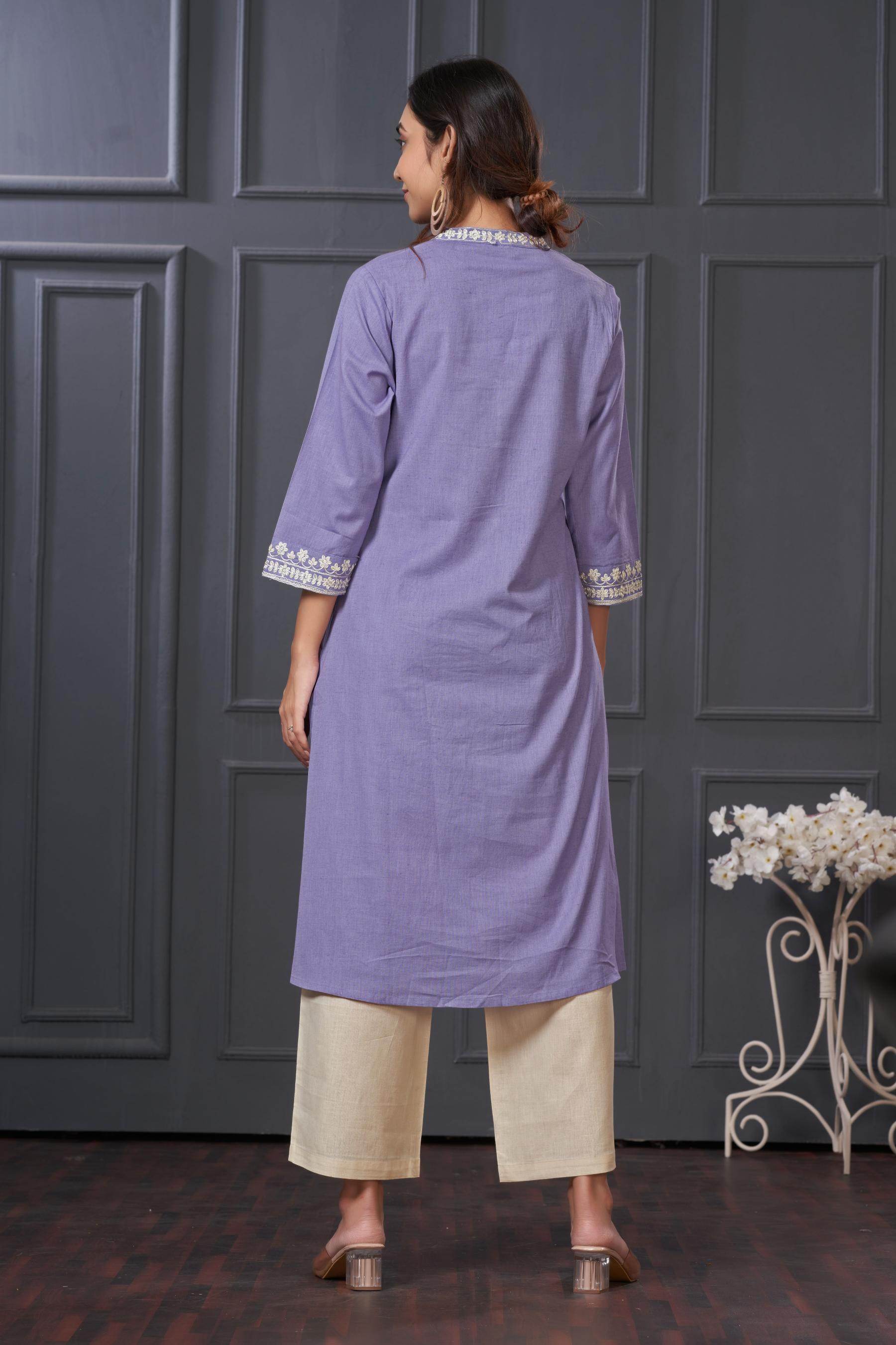 BulBul Hazel Purple & Blue Embellished Solid Cotton Kurta Set for Women – Stylish Comfortable Ethnic Wear