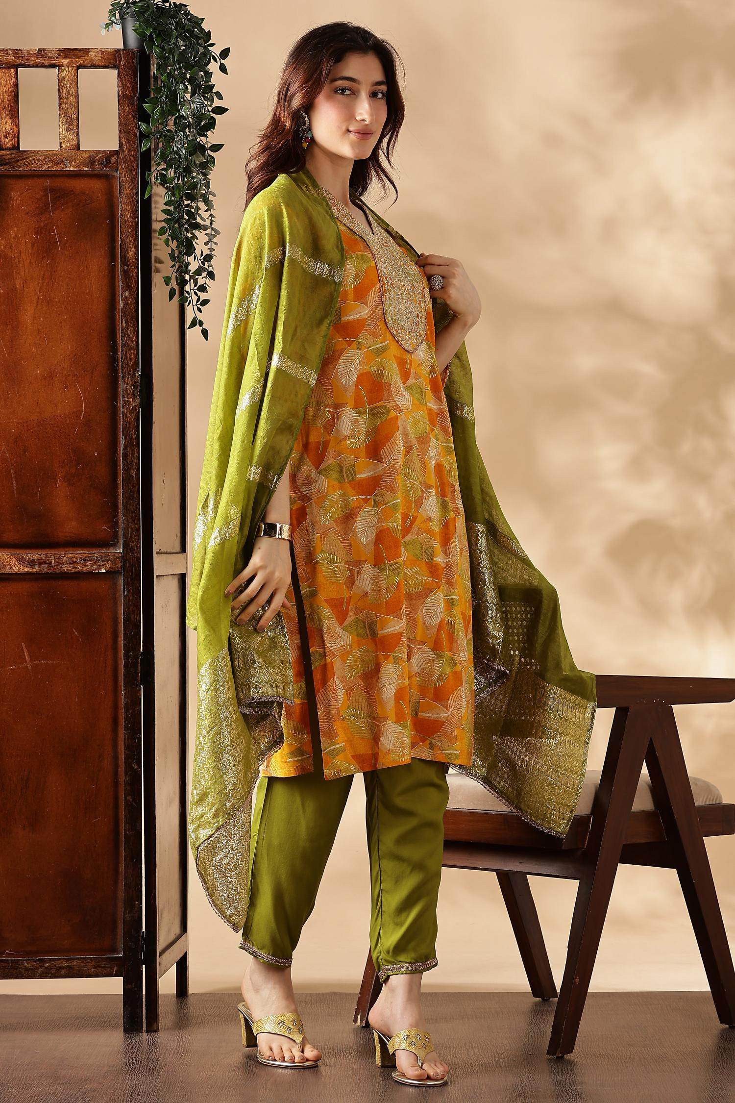 Lightweight chiffon dupatta complements the kurta and adds elegance