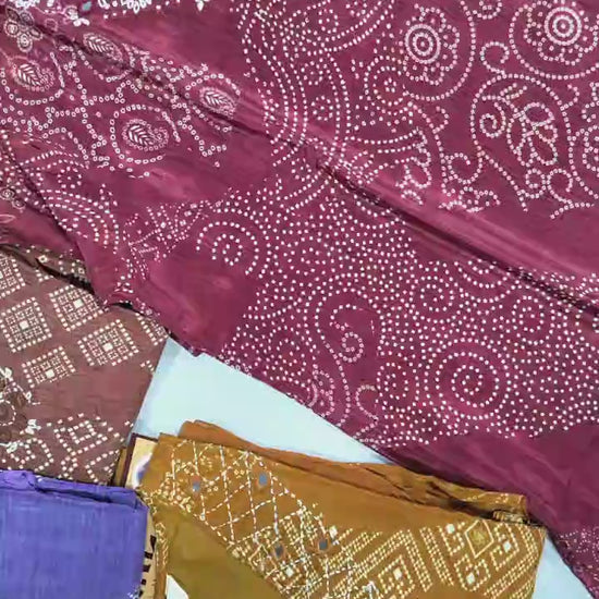 Stunning kurti set featuring intricate handwork, mirror work, and geometric patterns. The V-neck design with elegant floral motifs creates a stylish ethnic look.