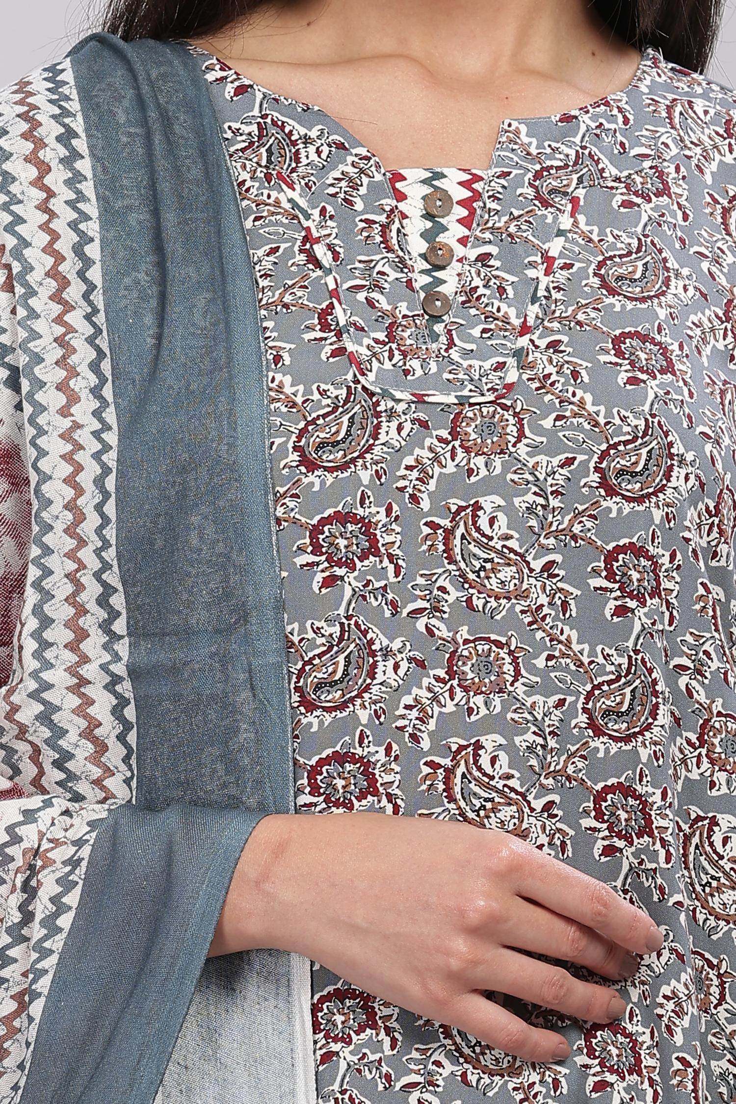 Firdous Rayon Grey Kurta Set with Dupatta – Elegant Ethnic Wear for Women