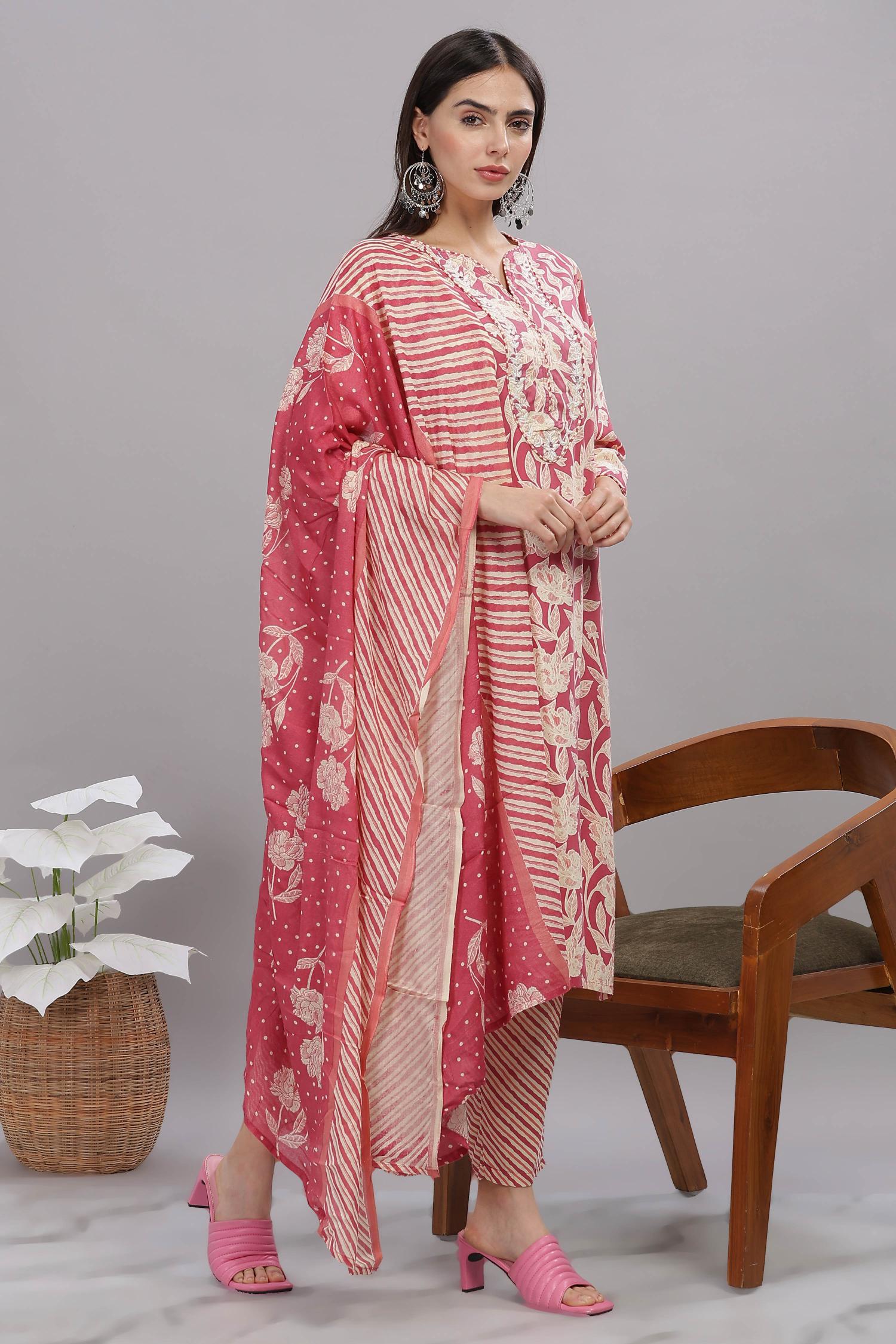 Firdous Rayon Red Kurta Set with Dupatta — a graceful 3-piece ensemble in rich red, crafted in soft, breathable rayon for all-day comfort and effortless elegance. Designed as a versatile pick for casual, semi-formal, and festive moments, this set pairs a printed rayon kurta with coordinated bottoms and a matching dupatta for a complete, ready-to-wear look