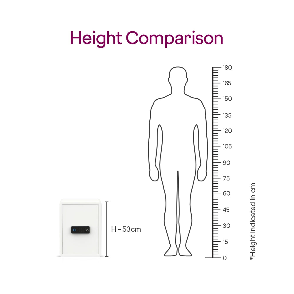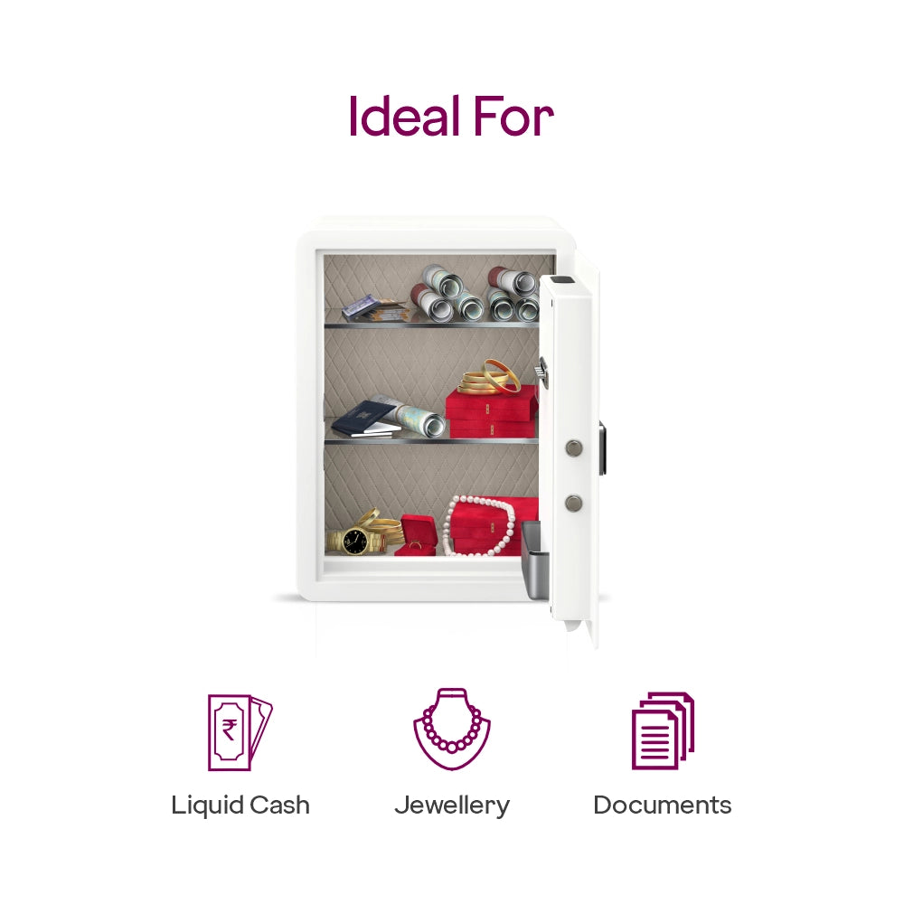 The Godrej NX Pro 48L Luxe Home Locker combines biometric and digital access with reinforced steel construction for superior security. Features include backup key and USB options, voice alerts, low-battery indicators, and door-open notifications. Built for homeowners seeking premium protection and refined design.