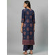 Ladies' Casual 3/4 Sleeve Solid Crepe Kurti and Palazzo Set (Navy Blue)