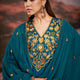 Raajvee Peacock Blue & Mustard Pure Silk Suit Set with Resham Zari Embroidery & Sequin Neckline