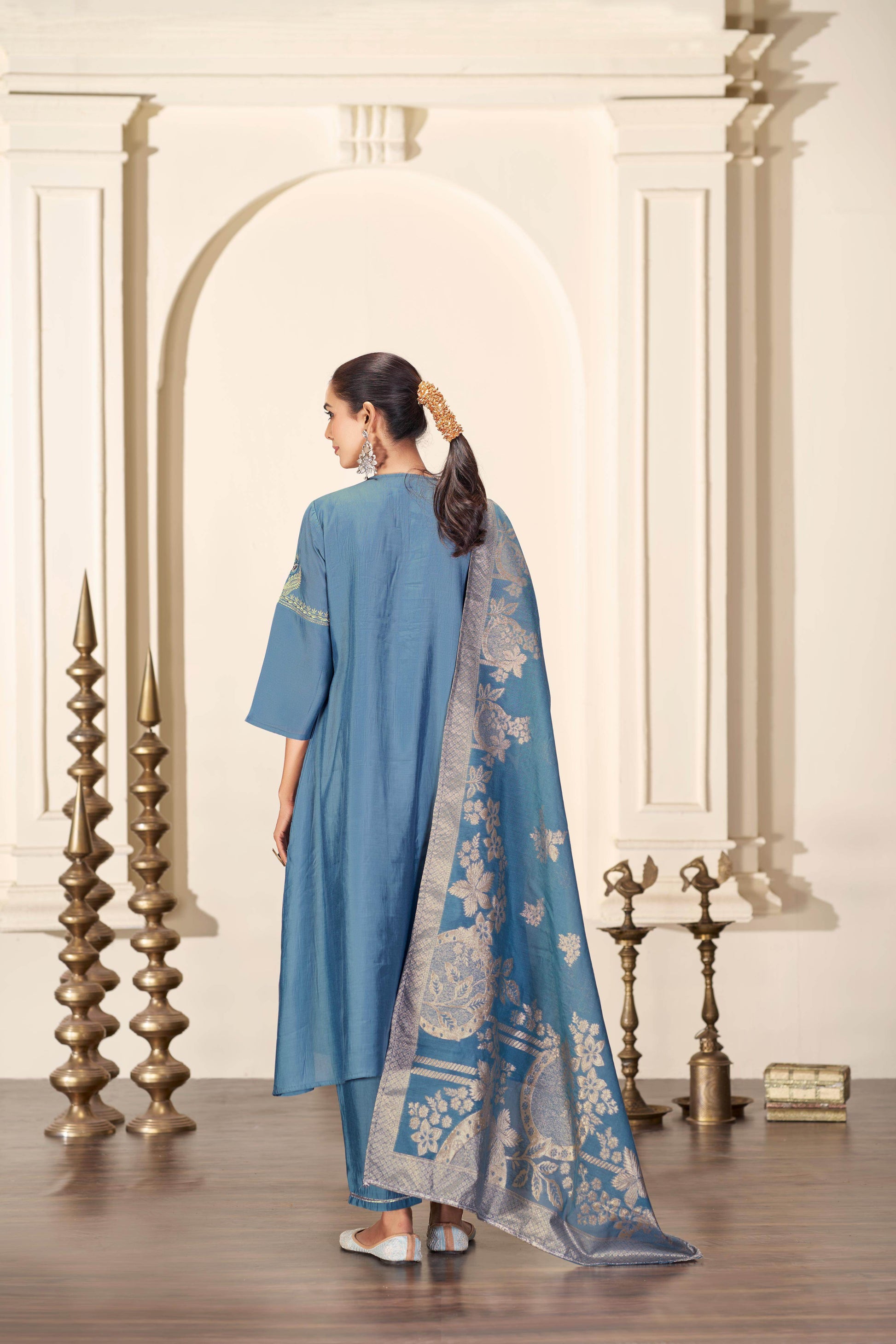· Complete the ensemble by pairing with ethnic footwear and statement jewelry for a striking ethnic style