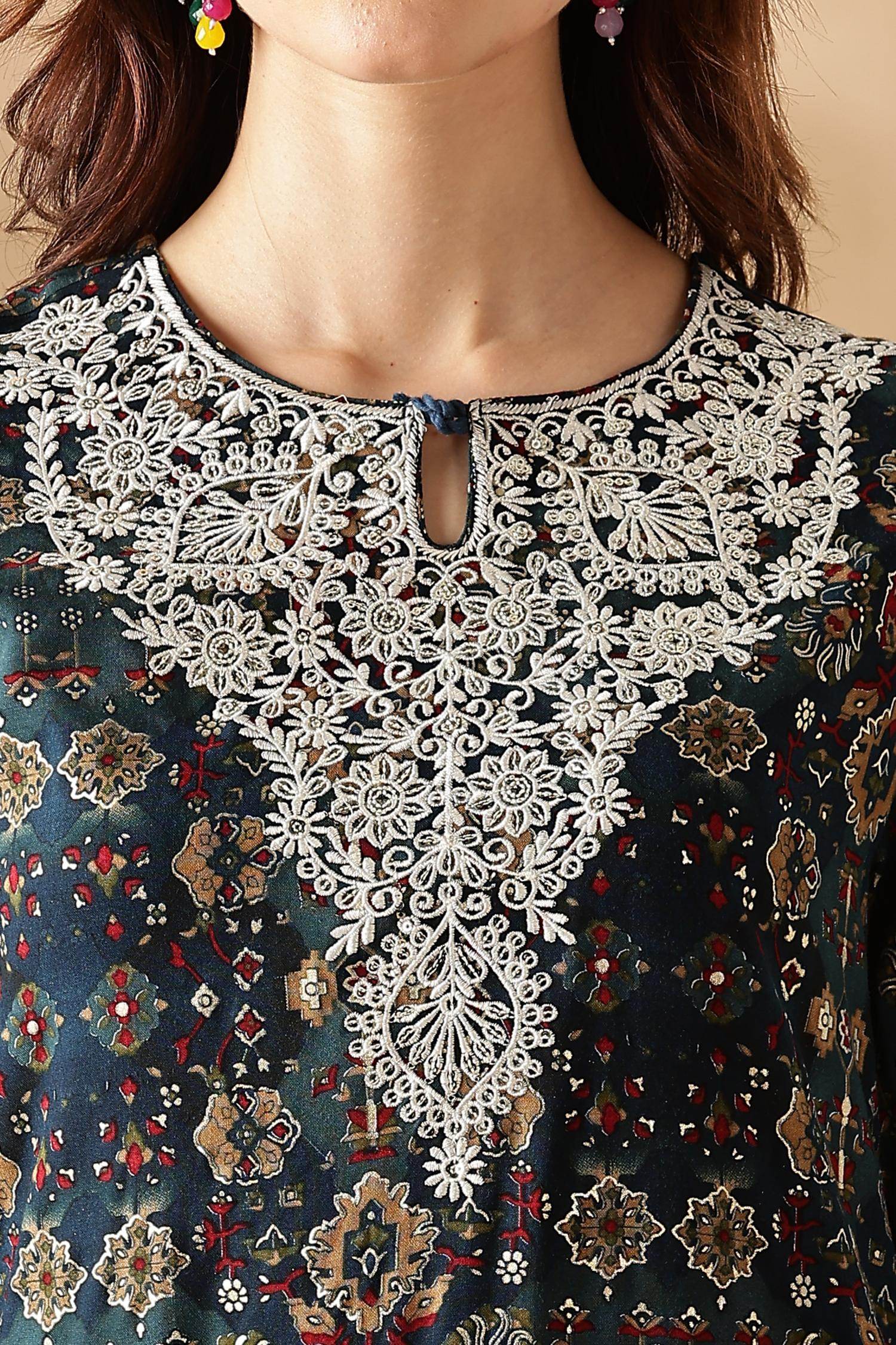 Dry in shade to preserve prints and embroidery finish