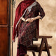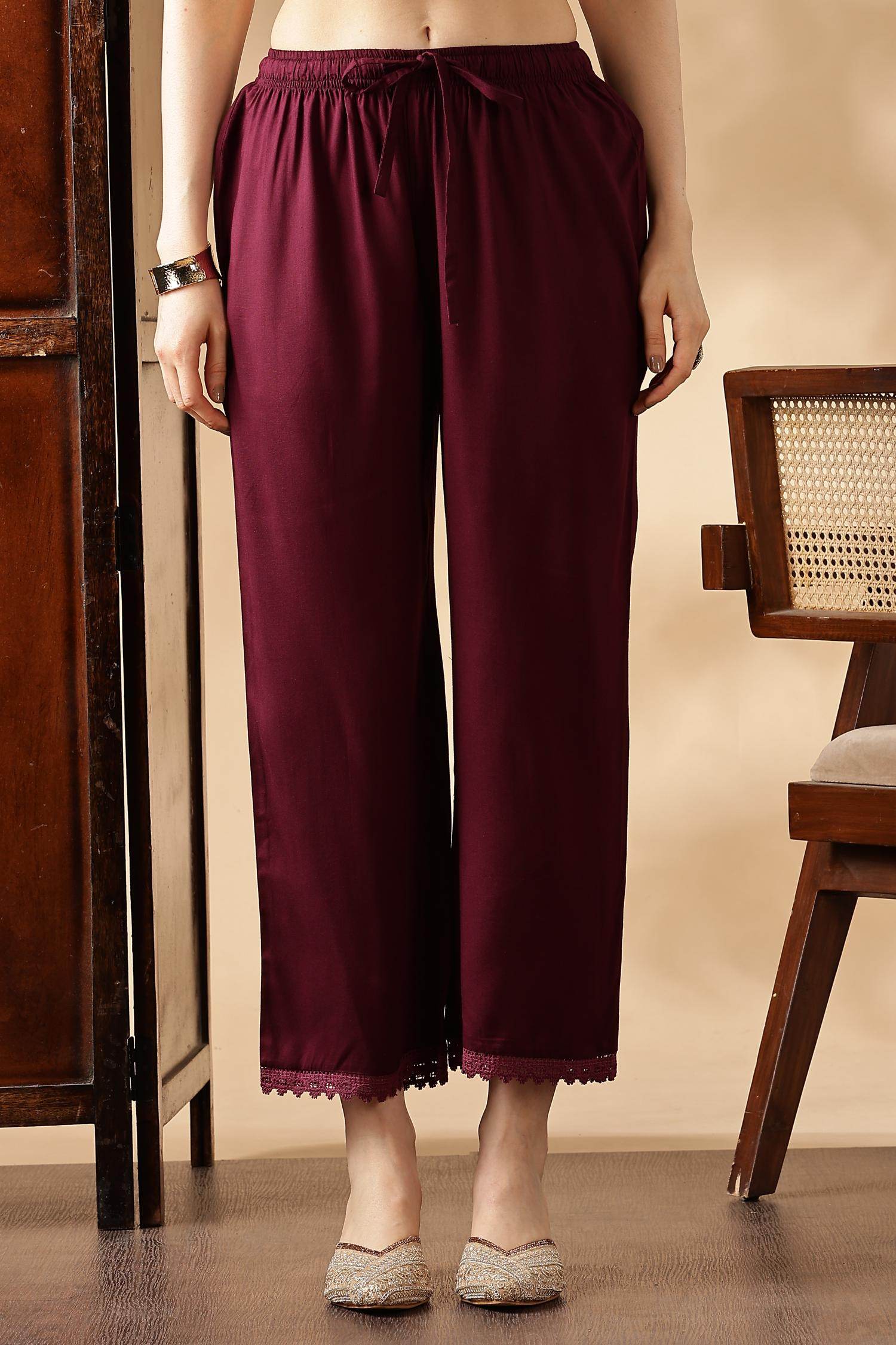 Wine base with subtle printed motifs across kurta and pant