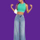 Crafted with a high-waisted design, these aquamarine blue jeans offer a flattering silhouette and a relaxed, comfortable fit. The functional pockets add practicality to their fashionable look, and their soft, stretchy material ensures all-day comfort.