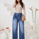 Upgrade your wardrobe with these Women's High-Waisted Faded Blue Jeans! The figure-flattering design and loose fit guarantee a comfortable and laid-back look. Complete with convenient pockets, these jeans are both stylish and functional. And with their soft and flexible material, you'll never want to take them off!