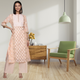 Women’s Casual Chanderi Cotton Kurti and Palazzo Set with 3/4 Sleeve Floral Print (Peach)